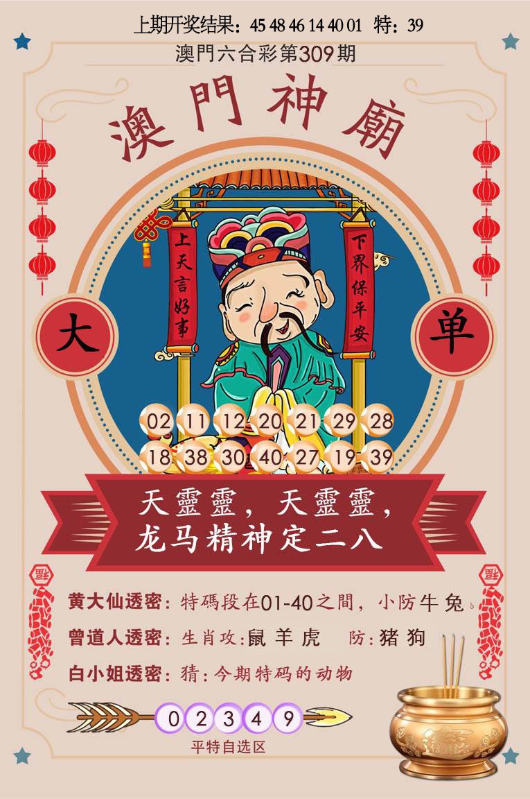 | 308期七肖 | 蛇兔龙马猴牛鸡 | 开:兔39中 |